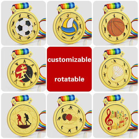 JinRuiXiang Sports Metal Medalhas Rotatable Golden Zinc Alloy Medalhas Suporte para Personalização Luz